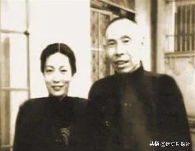 画面中的是杜月笙和孙佩豪,仔细看她的长相和孟小冬有几分相似,笑起来很温婉大气。